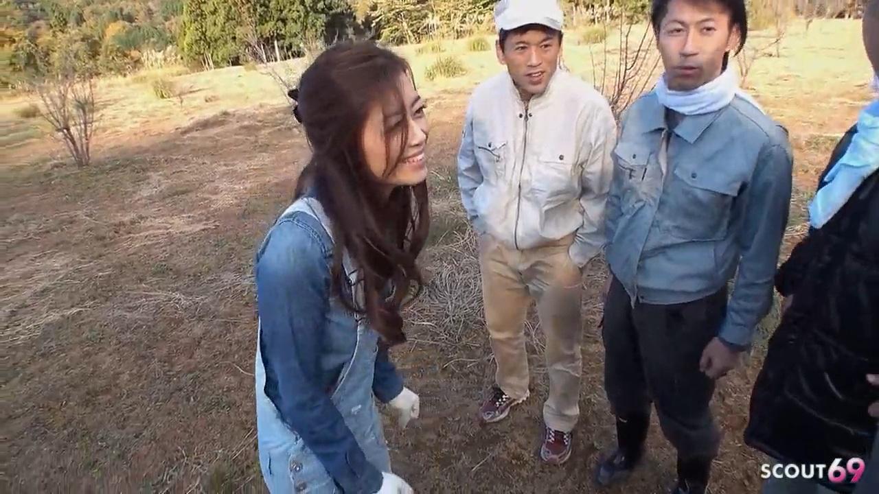 A sexy Japanese girl gets tricked into fucking outdoors and is gangbanged by many guys. She takes their cocks in her tight pussy and gets filled with hot cum. She cums on their faces as the creampie continues.
